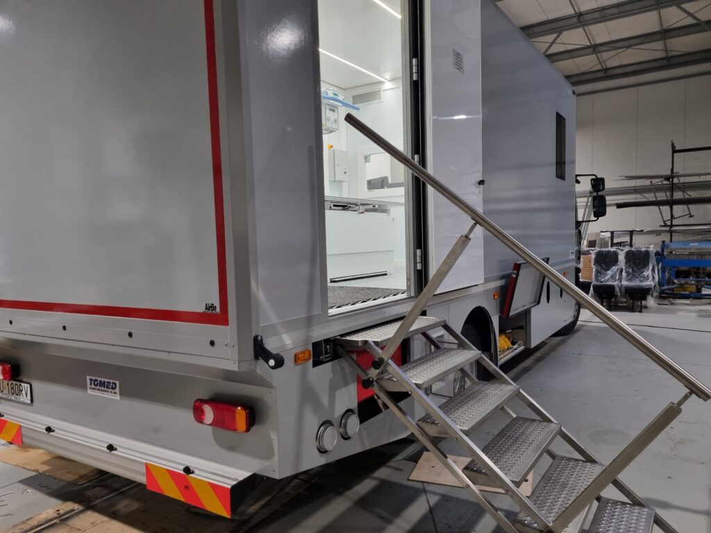 Mobilny ambulans rentgenowski może zostać wykonany na podwoziu większości z czołowych producentów samochodów ciężarowych. Wyposażenie wykonujemy w oparciu o najnowsze rozwiązania techniczne i radiologiczne.